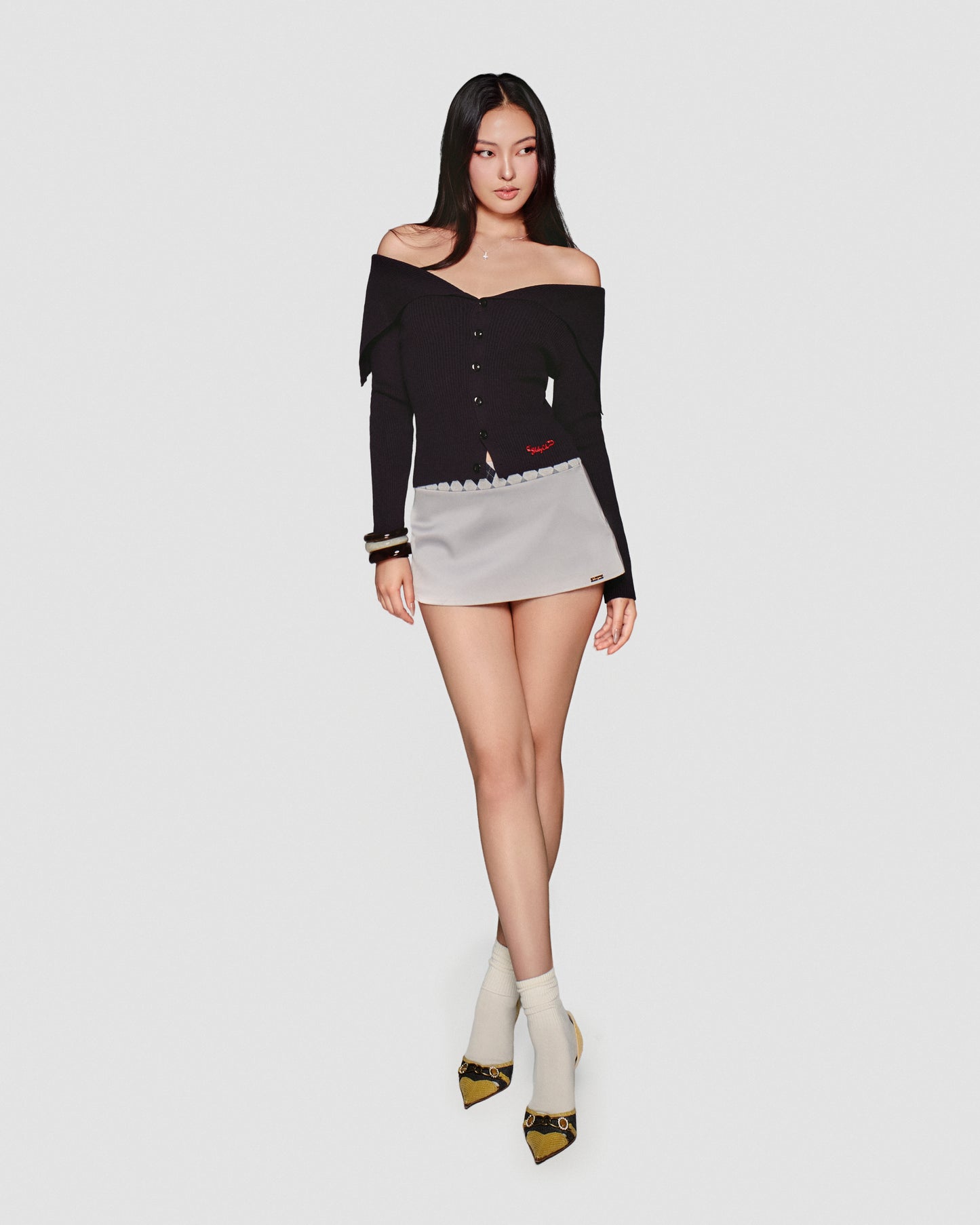 • Áo len tay dài với thiết kế cổ trễ layer nổi bật