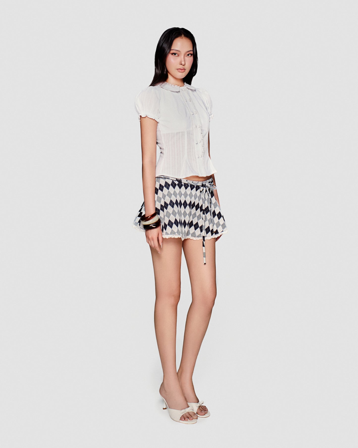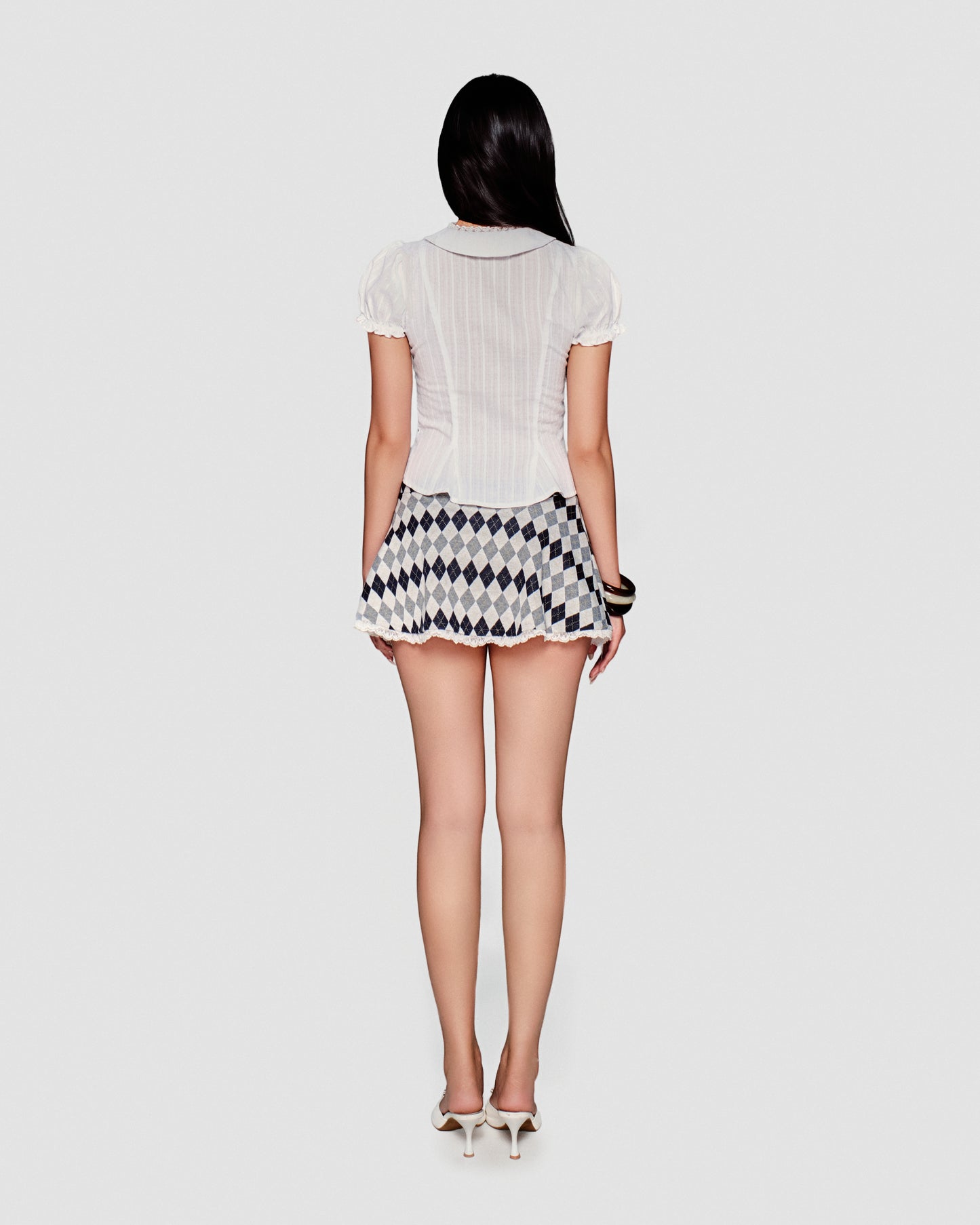 • Chân váy ngắn với họa tiết len argyle nổi bật